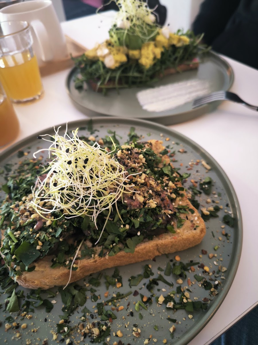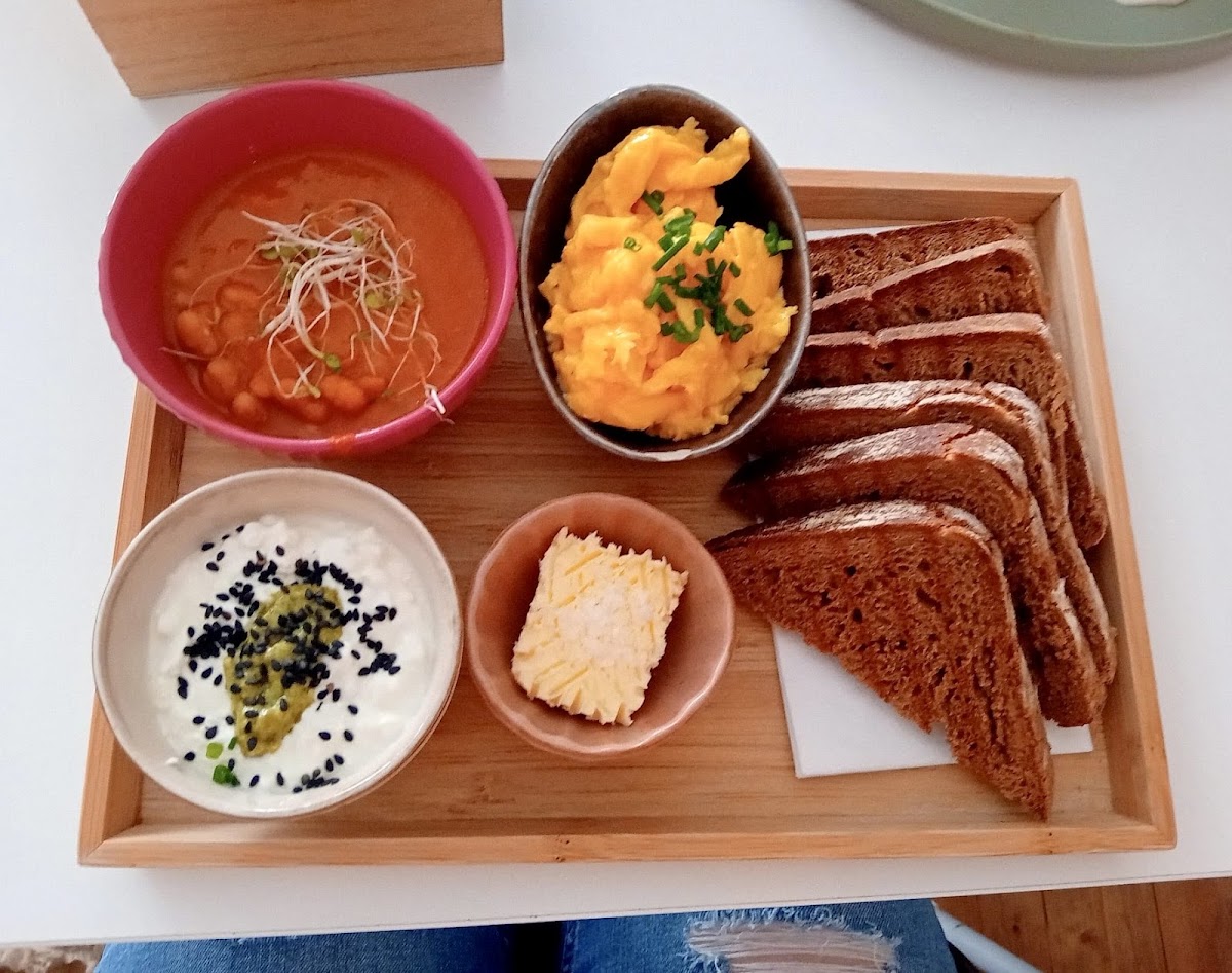We went for brunch and had a very nice experience. All indoor tables were reserved, so we sat outside, which was still enjoyable. I had a savoury plate that looked small at first, but it turned out to be quite filling—I stayed full for hours! The lady serving us was friendly and spoke good English. The homemade coconut chia latte tea was delicious. A lovely spot for brunch with great service and tasty food.